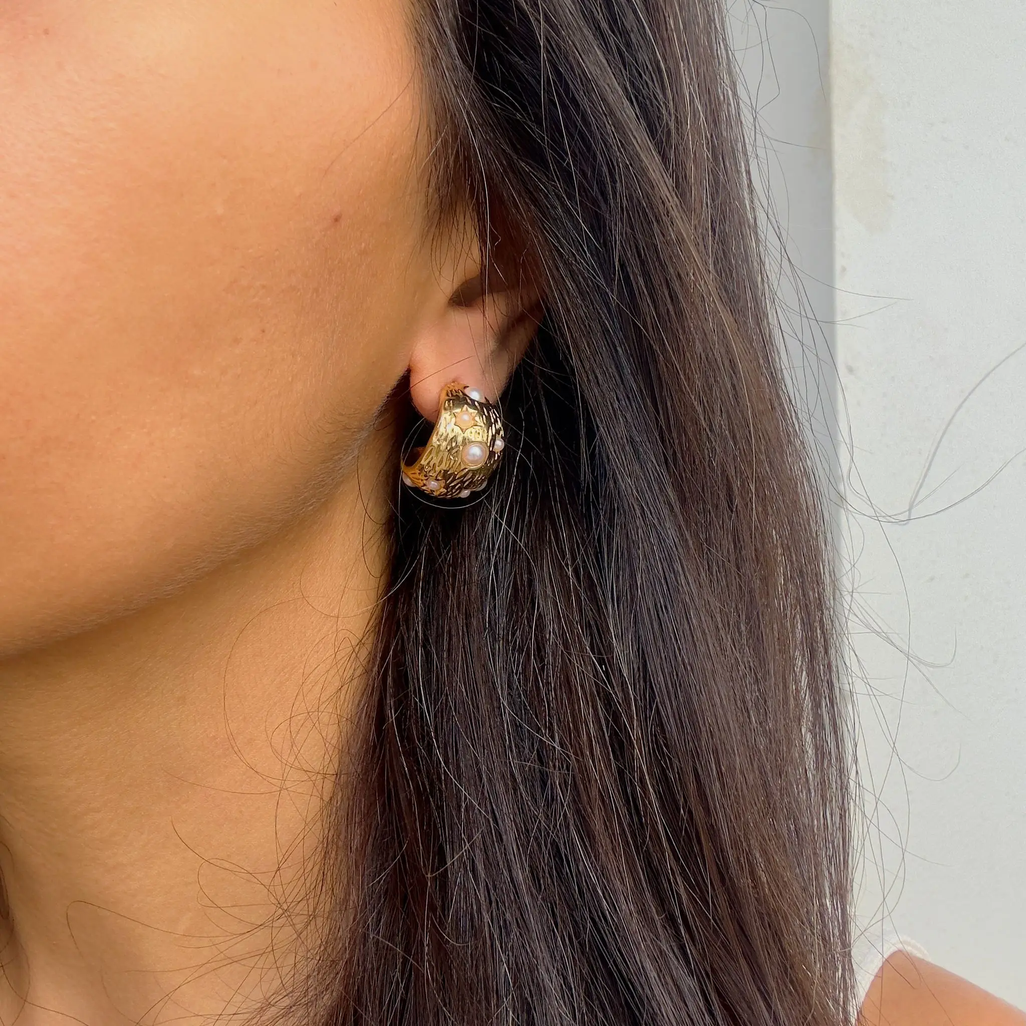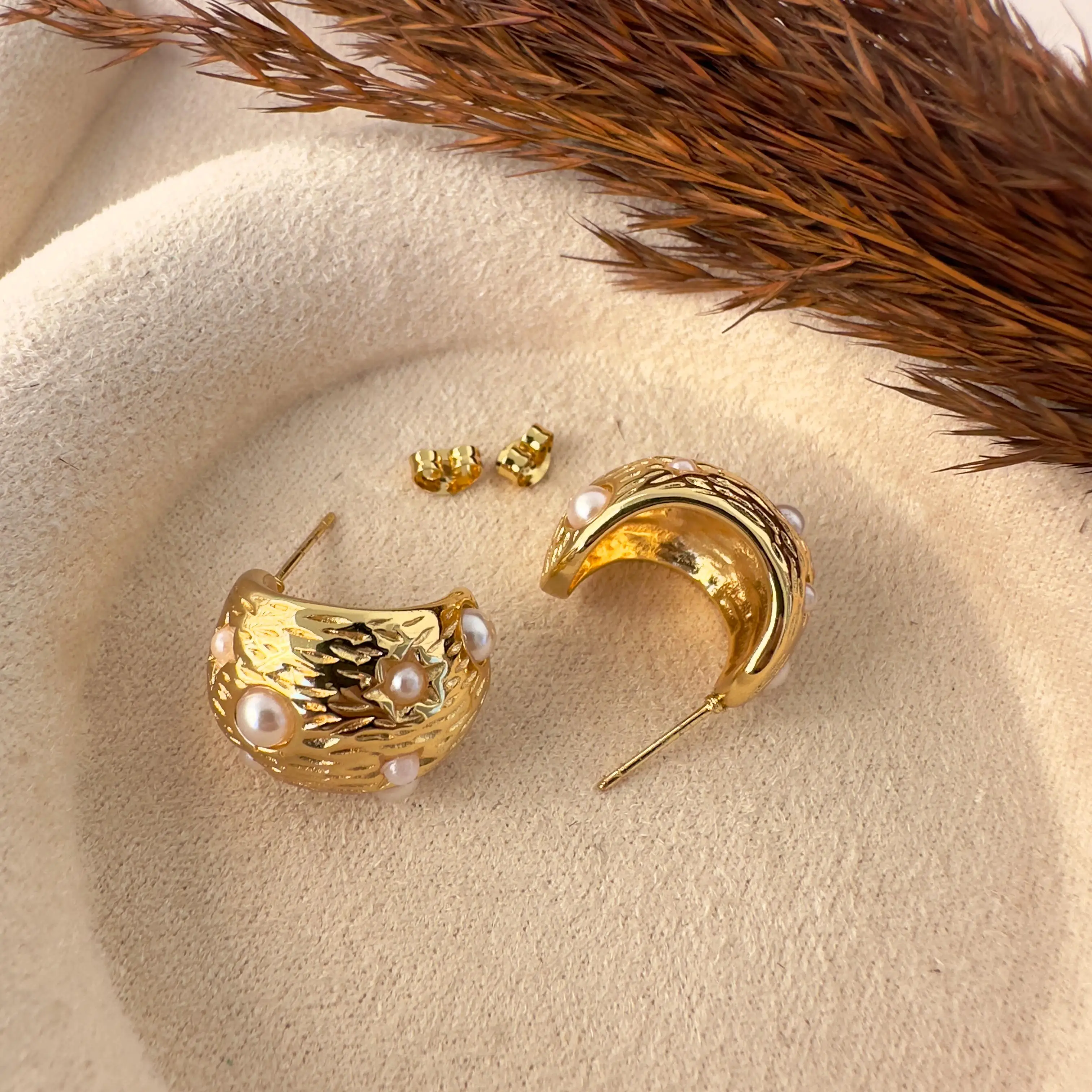 GY0006 Gold İnci Detaylı Bombeli Küpe