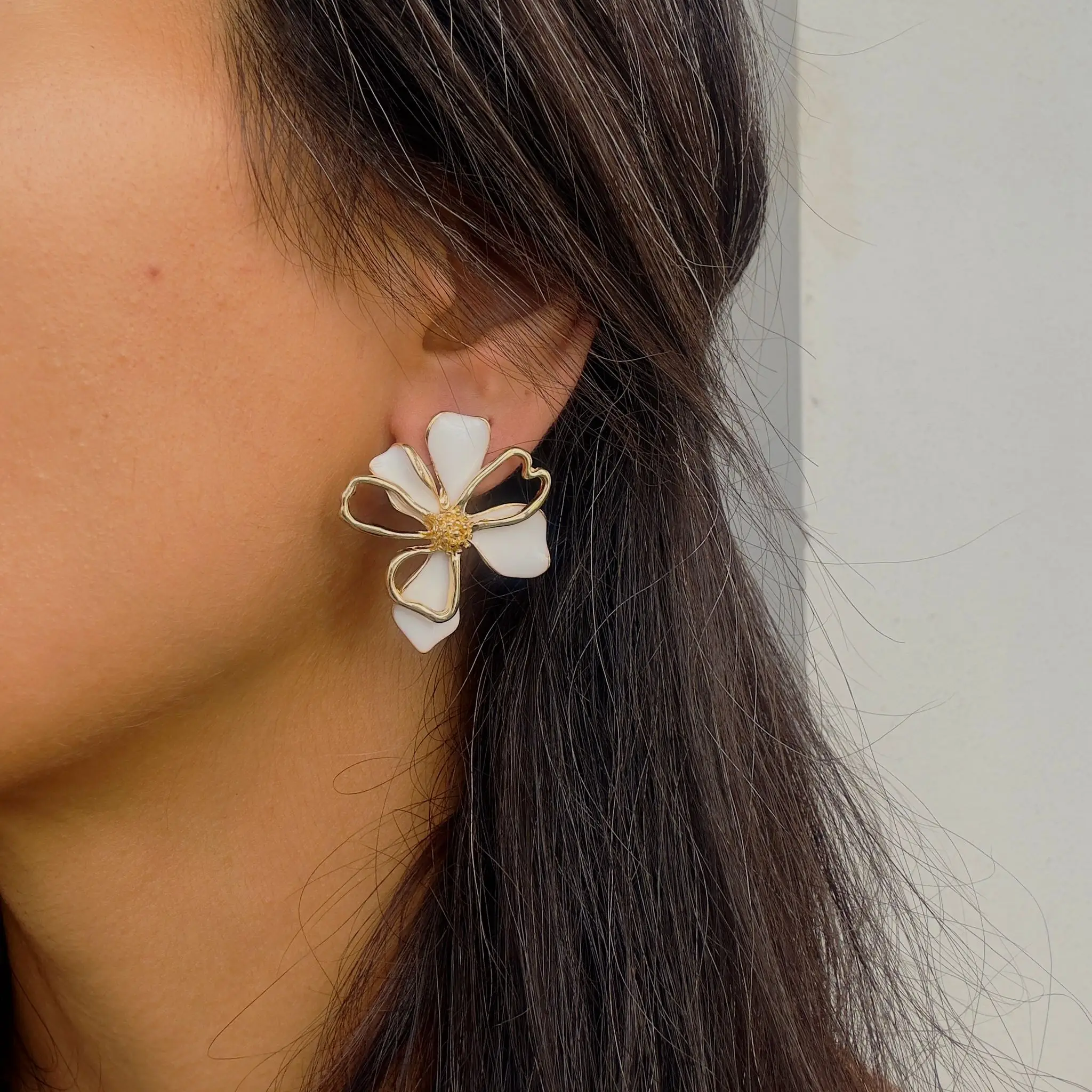 GY0018 Gold Beyaz Mineli Çiçek Küpe