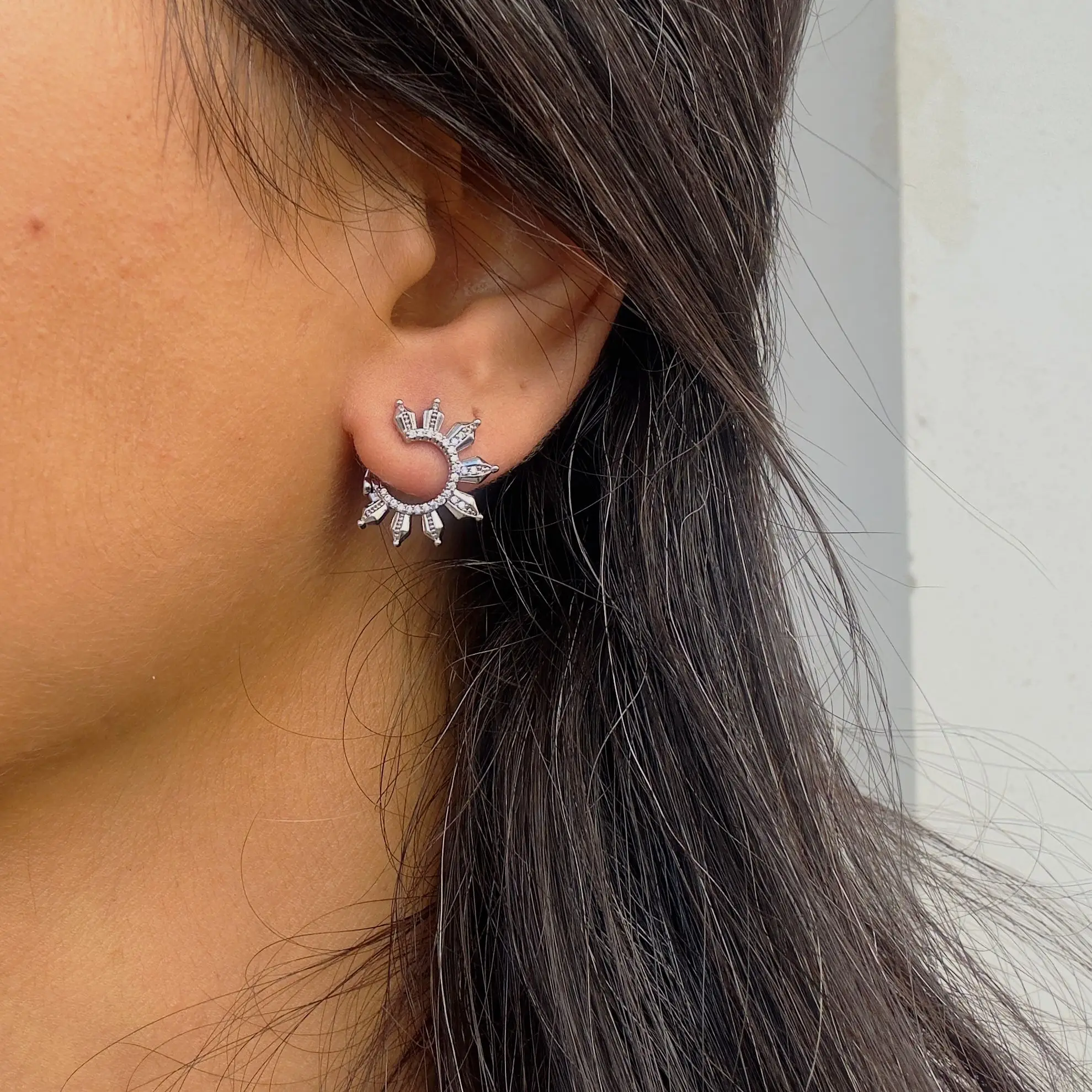 GY0025 Silver Önden Arkaya Dolanan Küpe