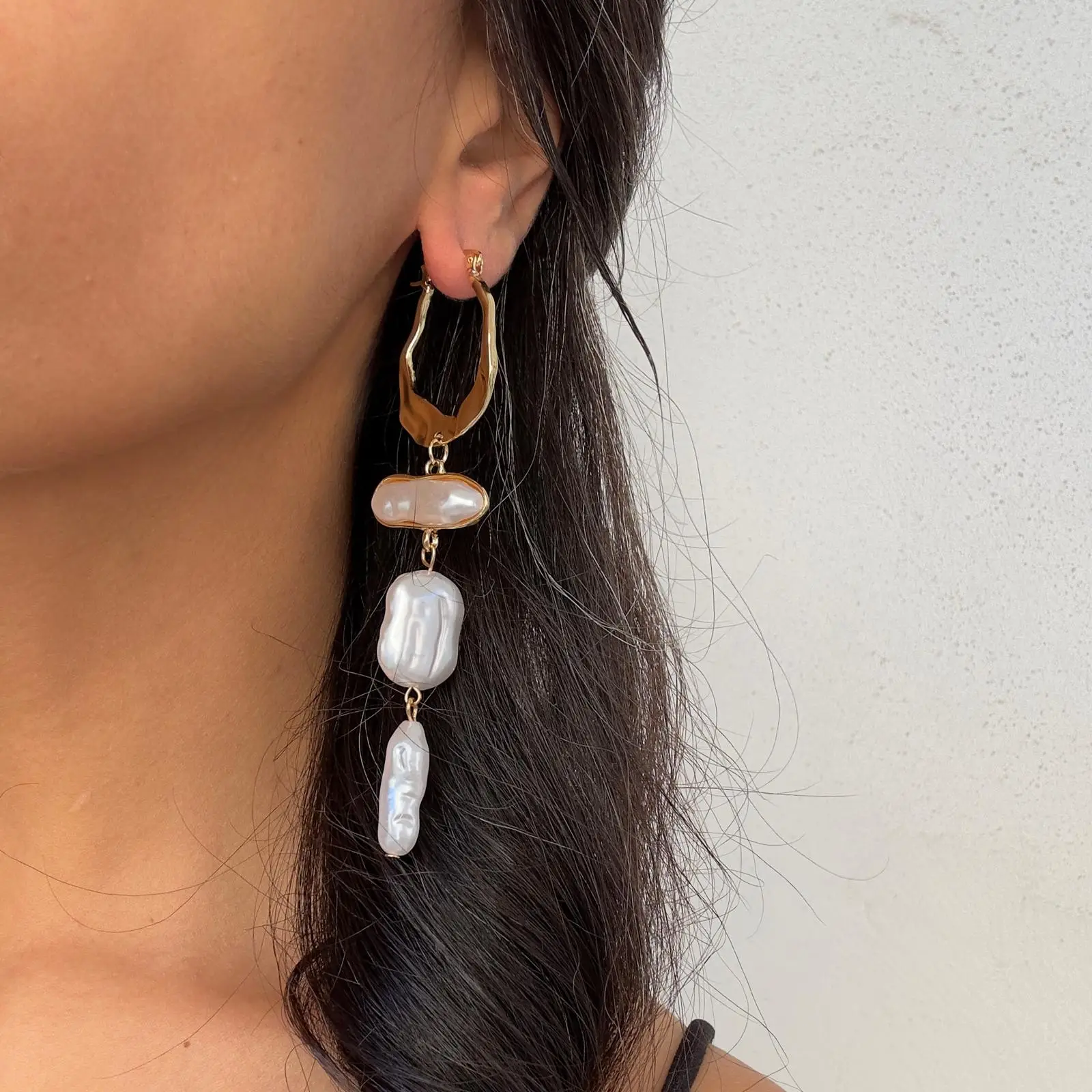 GY0232 Gold İnci Detay Sallantılı Küpe