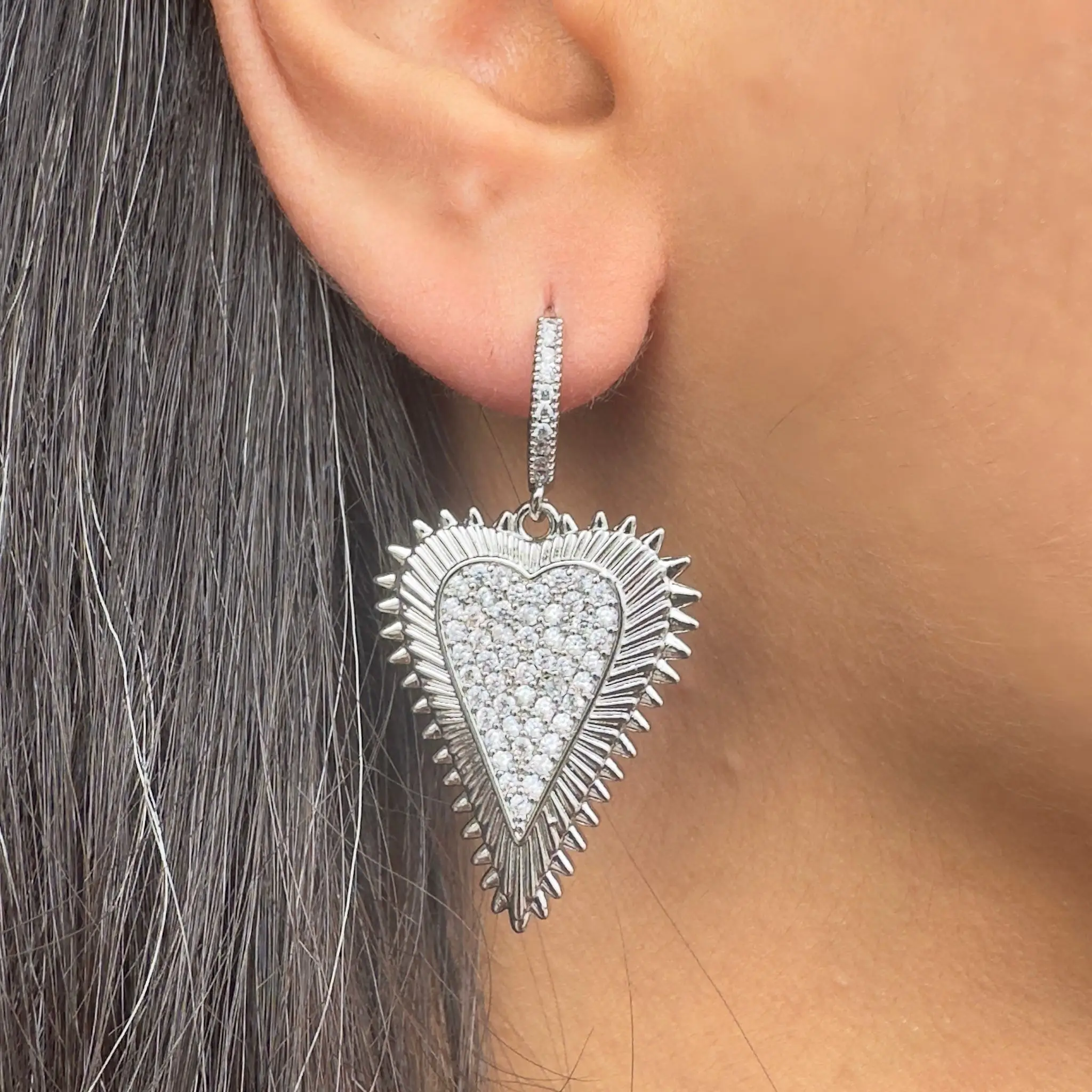 Kalp Taş Detaylı Sallantılı Silver Küpe