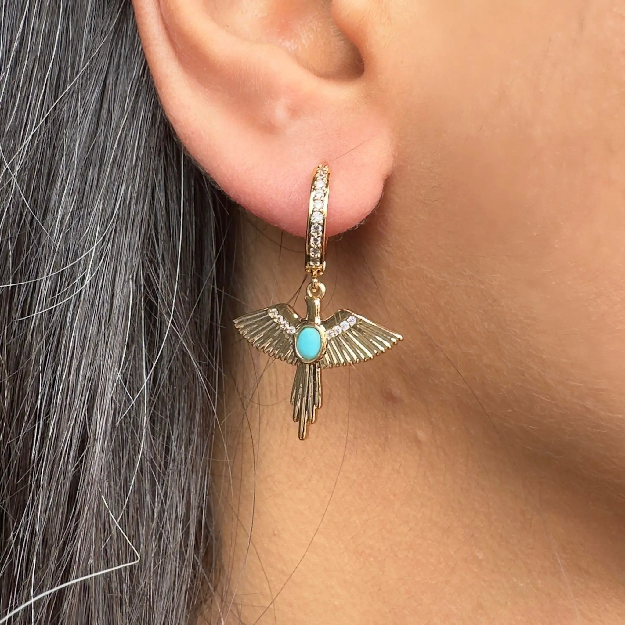 Mitolojik Mavi Taşlı Gold Küpe