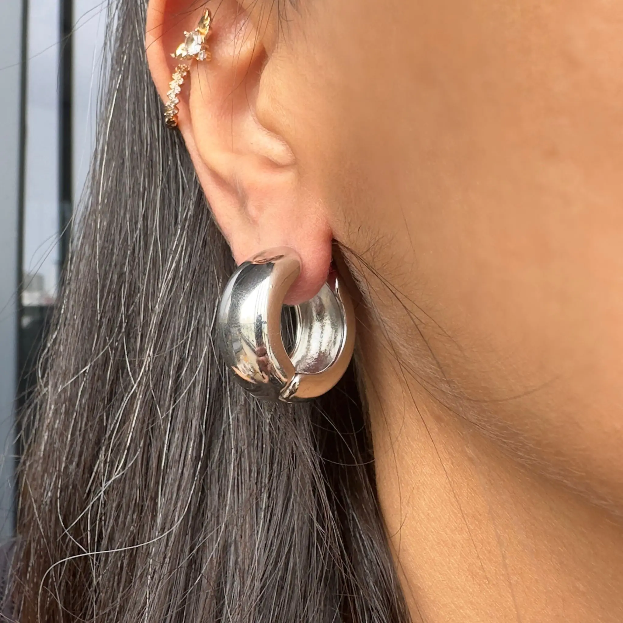 Orta Boy Enli Silver Halka Küpe