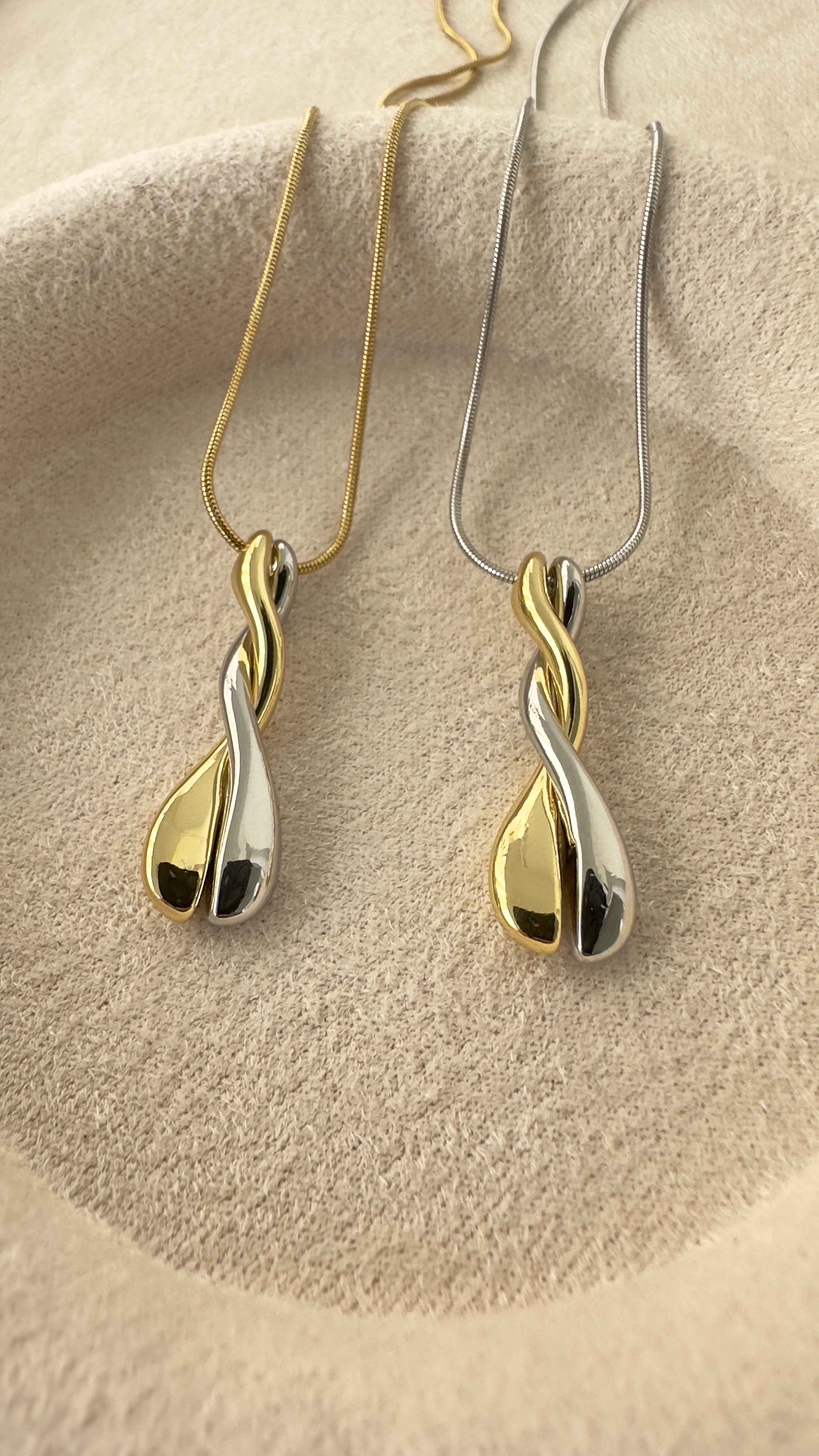Sarmal Gold & Silver Uçlu Silver Çelik Kolye